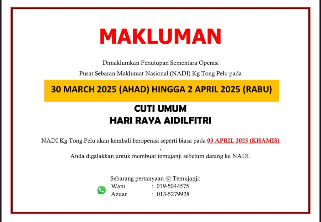 Notis Penutupan Sementara Operasi NADI Kg Tong Pelu